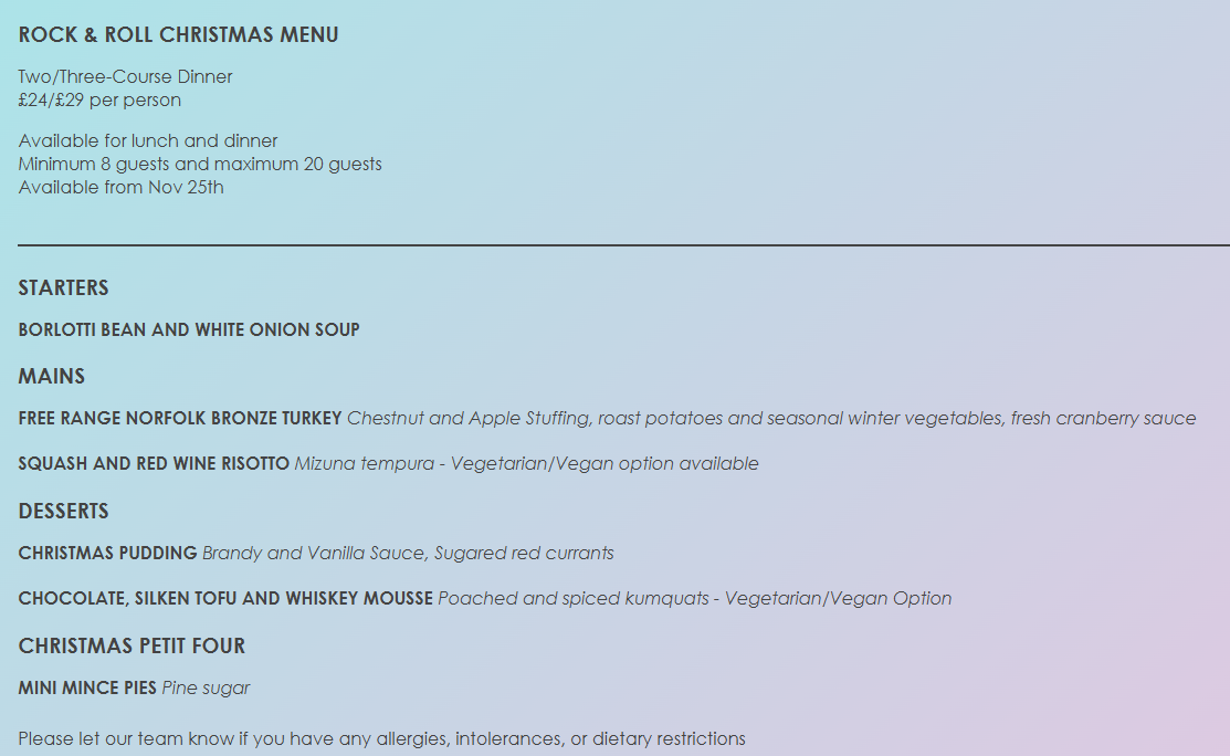 | Dinner & Show - early seating Indulge in a devilishly delicious sharing meal while you feast your eyes on the show - £50 per person. (please note, that some tables are sharing tables, so you might be sat opposite/next to other dinners) | 19:00 - 20:55 | £54.00 |