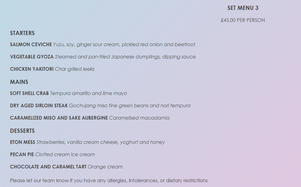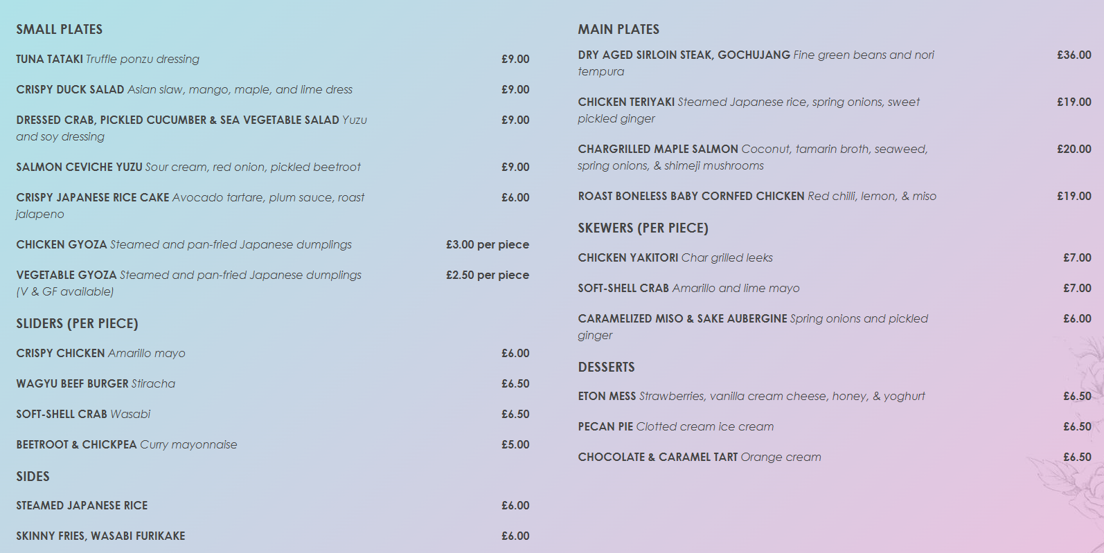 | Dinner & Show - late seating Indulge in a devilishly delicious sharing meal while you feast your eyes on the show - £50 per person. (please note, that some tables are sharing tables, so you might be sat opposite/next to other dinners) | 21:00 - 23:00 | £54.00 |